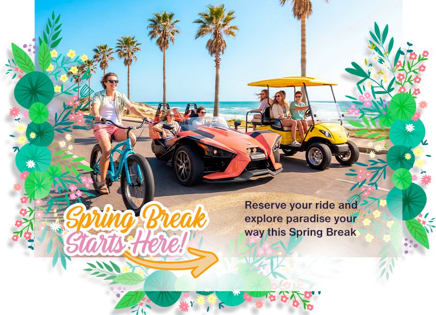 Choose from a variety of stylish, spacious golf carts and slingshots for affordable and fun access to all of South Padre Island’s attractions.